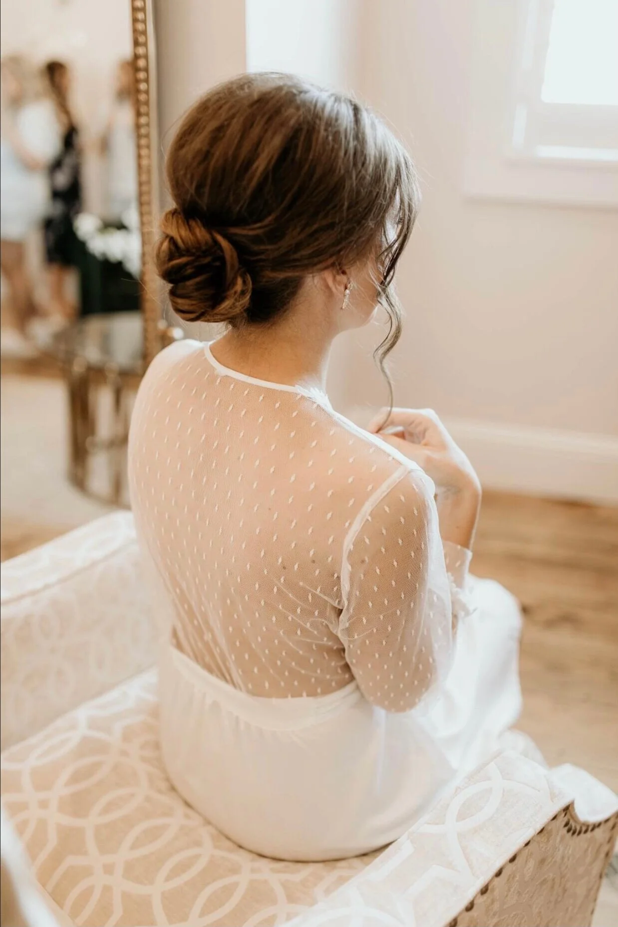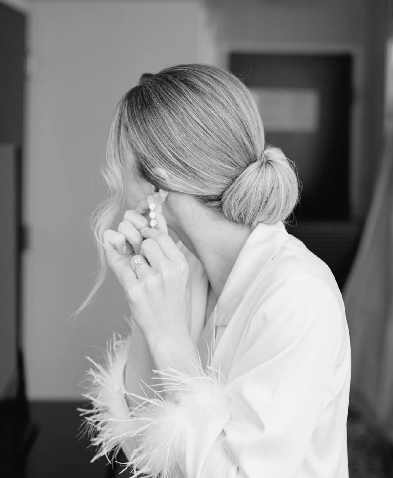 Wash your hair one final time before wedding day! Chances are, your stylist will have a preference when it comes to clean or “dirty” hair. We recommend pampering yourself with a blowout 2 days before your wedding day to get rid of any frizz and tame those baby hairs.